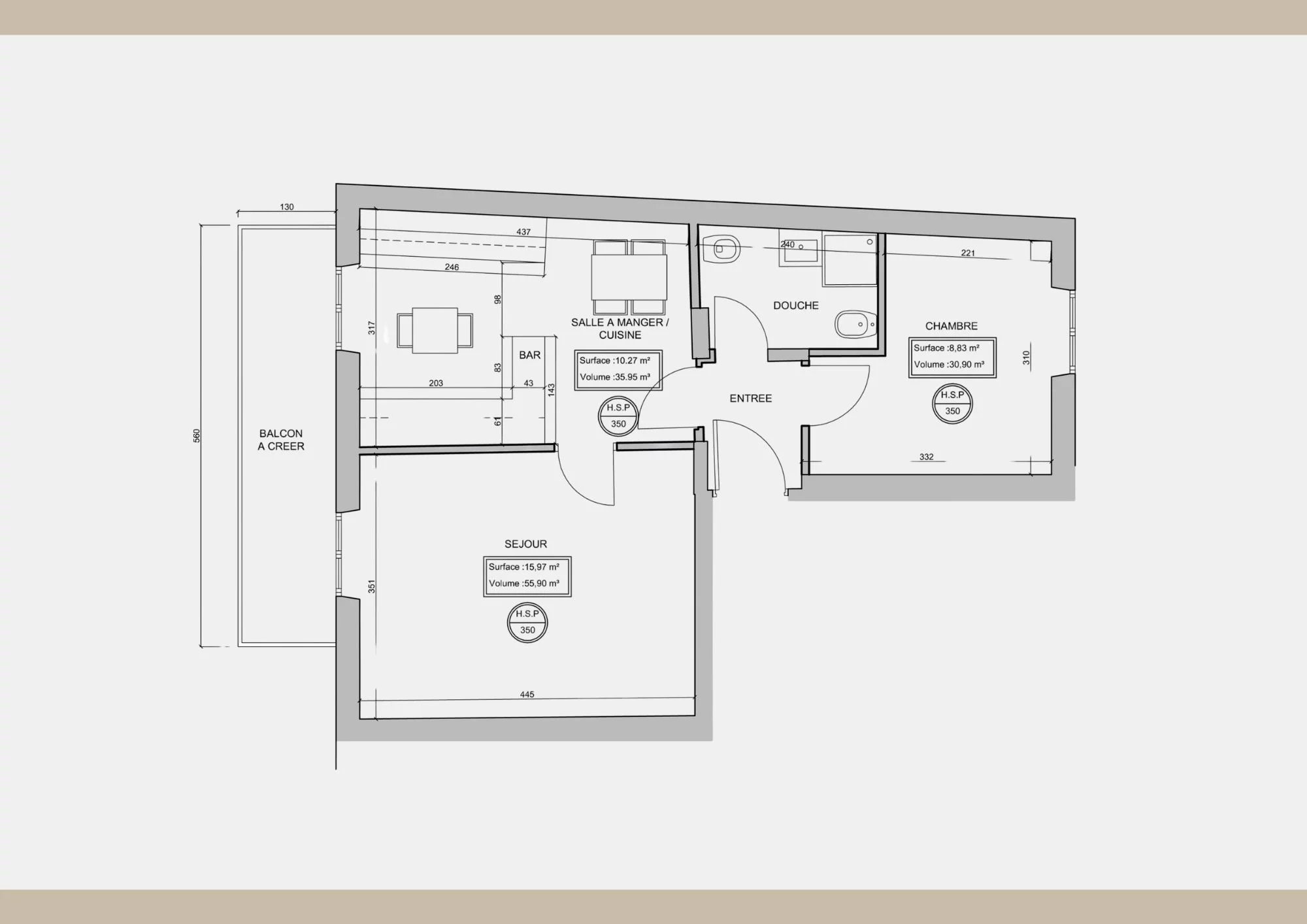 The 55m² apartment comprises an entrance hall, a kitchen/dining room and a living room opening onto a large 10m² balcony, a bedroom and a shower room. Apartment in excellent condition, air-conditioned, vacant.